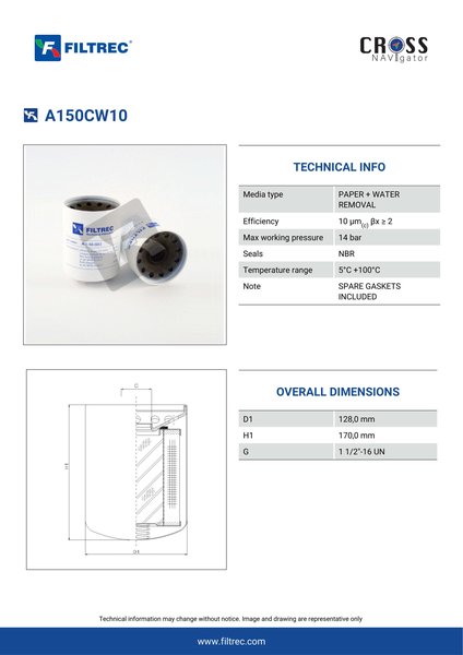 Filtrec A150CW10 Replaces the FilterFinder FF213229B