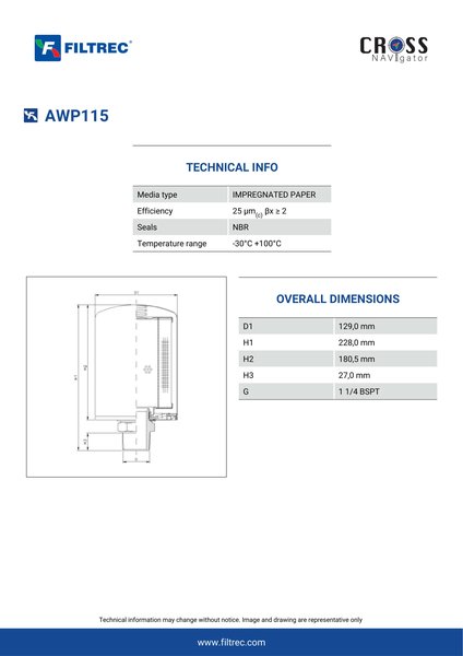 The efficiency of the element is shown using the Micron (µ) and Beta (β) ratings. The micron rating indicates the size of the particle being filtered and the beta rating the efficiency, calculated as 1/β.