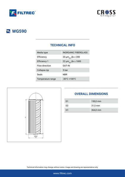 The efficiency of the element is shown using the Micron (µ) and Beta (β) ratings. The micron rating indicates the size of the particle being filtered and the beta rating the efficiency, calculated as 1/β.