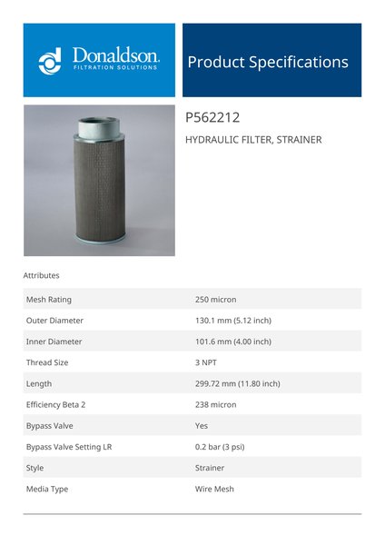 The efficiency of the element is shown using the Micron (µ) and Beta (β) ratings. The micron rating indicates the size of the particle being filtered and the beta rating the efficiency, calculated as 1/β.