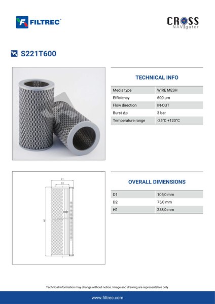Filtrec S221T600 Replaces the FilterFinder FF215084B