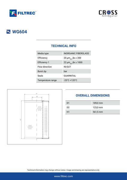 Filtrec WG604 Replaces the FilterFinder FF215144B