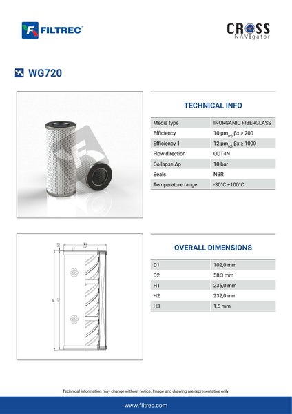 Filtrec WG720 Replaces the FilterFinder FF215149B