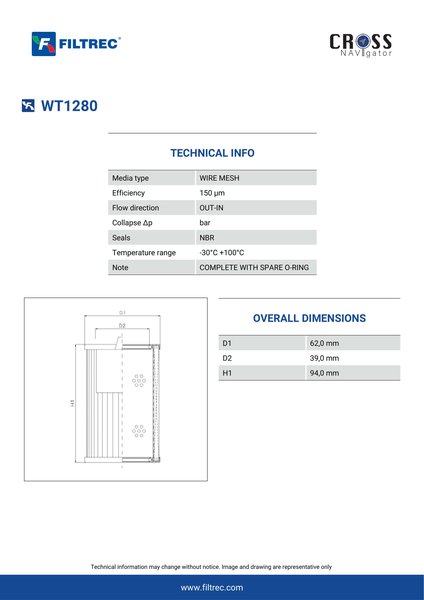 Filtrec WT1280 Replaces the FilterFinder FF215158B