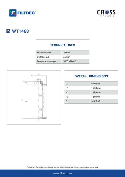 Filtrec WT1468 Replaces the FilterFinder FF215176B