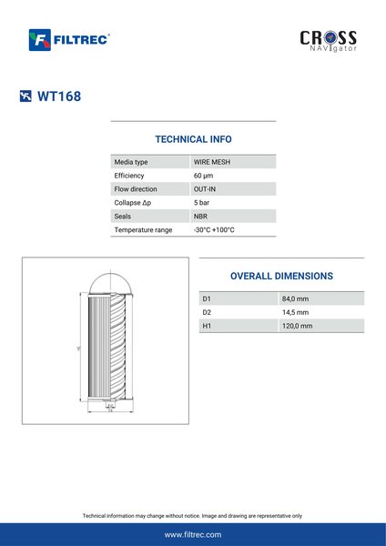 The efficiency of the element is shown using the Micron (µ) and Beta (β) ratings. The micron rating indicates the size of the particle being filtered and the beta rating the efficiency, calculated as 1/β.