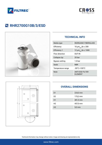 Filtrec RHR2700G10B/3/ESD Replaces the FilterFinder FF215454B