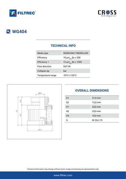 Filtrec WG404 Replaces the FilterFinder FF215614B