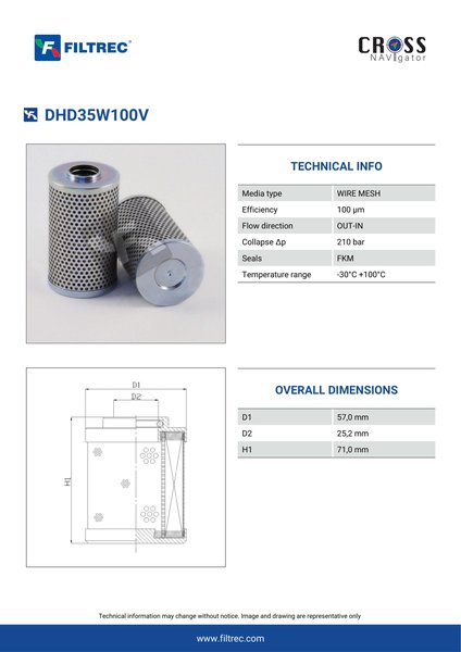 Filtrec DHD35W100V Replaces the FilterFinder FF215626B