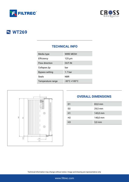 Filtrec WT269 Replaces the FilterFinder FF215630B