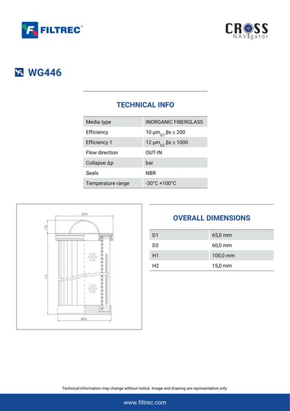 Filtrec WG446 Replaces the FilterFinder FF215634B