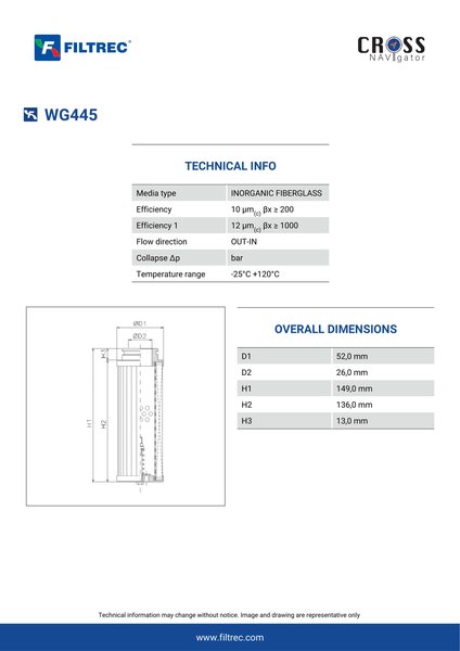 Filtrec WG445 Replaces the FilterFinder FF215635B