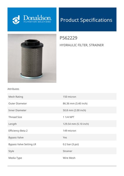 Donaldson P562229 Hydraulic Filter, Strainer | Replaces the FilterFinder FF215683B