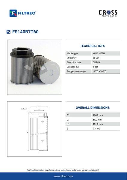 Filtrec FS140B7T60 Replaces the FilterFinder FF215685B