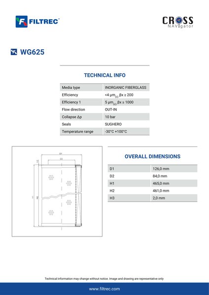 Filtrec WG625 Replaces the FilterFinder FF215747B