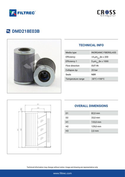Genuine Filtrec DMD218E03B. This Filtrec element is designed to meet or exceed the quality and performance of brand OEM’s ensuring superior filtration performance and long-lasting durability.