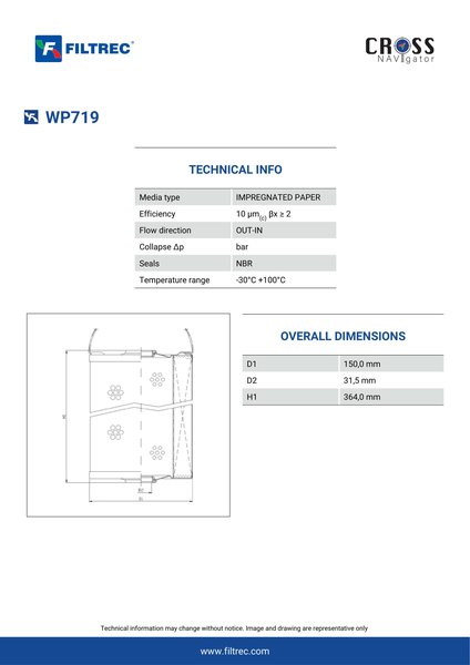 Genuine Filtrec WP719. This Filtrec element is designed to meet or exceed the quality and performance of brand OEM’s ensuring superior filtration performance and long-lasting durability.