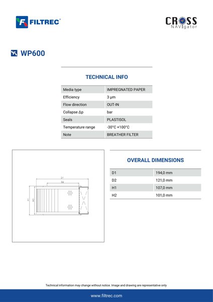 Filtrec WP600 Replaces the FilterFinder FF215815B