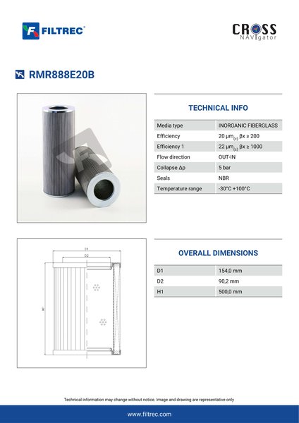 The efficiency of the element is shown using the Micron (µ) and Beta (β) ratings. The micron rating indicates the size of the particle being filtered and the beta rating the efficiency, calculated as 1/β.