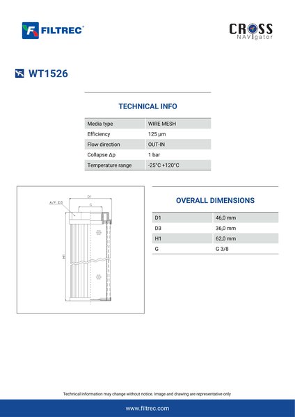 Filtrec WT1526 Replaces the FilterFinder FF215856B