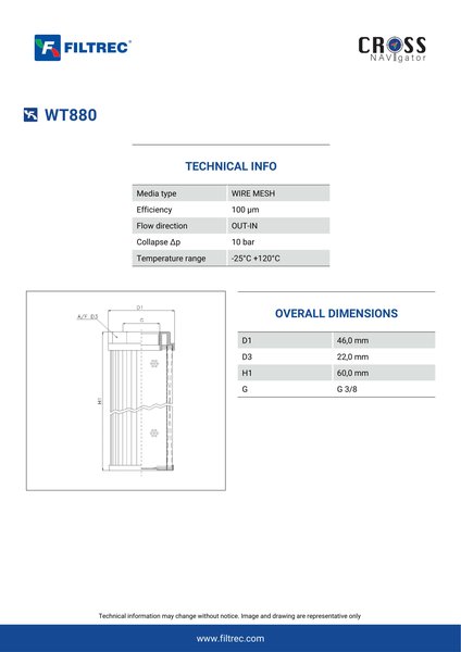 Filtrec WT880 Replaces the FilterFinder FF215857B