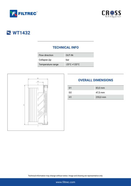 Filtrec WT1432 Replaces the FilterFinder FF215884B