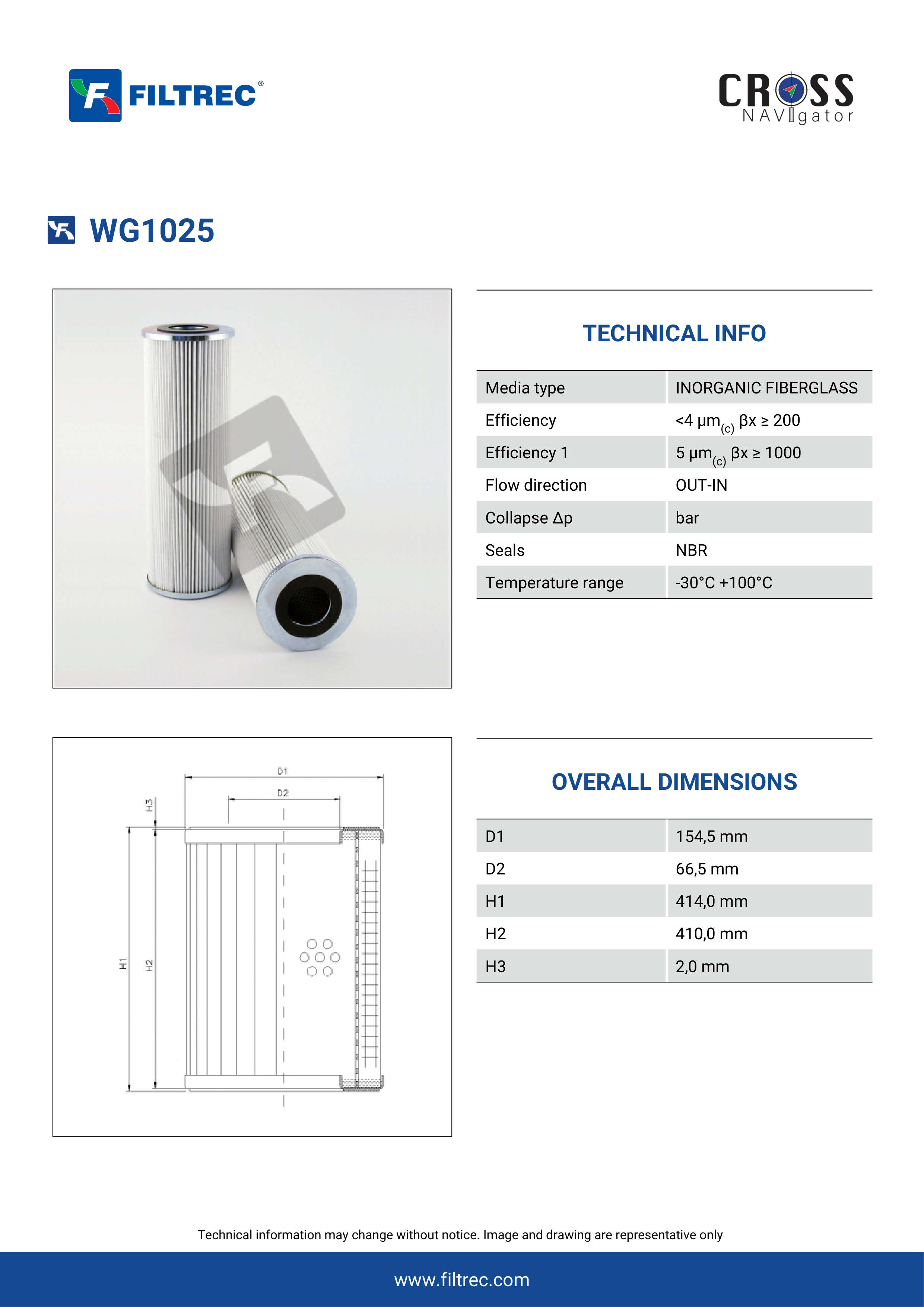 Genuine Filtrec WG1025. This Filtrec element is designed to meet or exceed the quality and performance of brand OEM’s ensuring superior filtration performance and long-lasting durability.