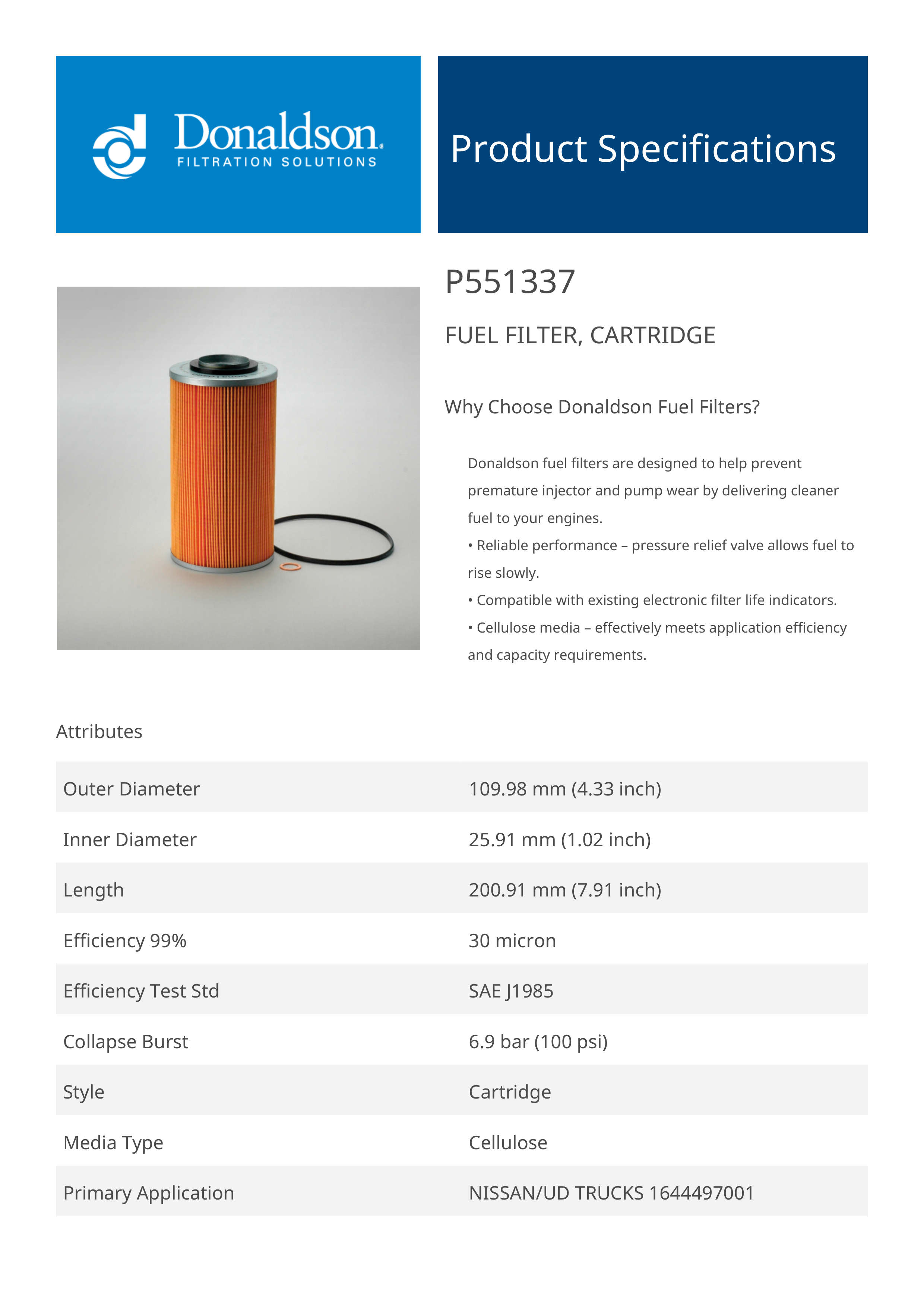 Donaldson P551337 Fuel Filter, Cartridge | Replaces the Fleetguard FF5119