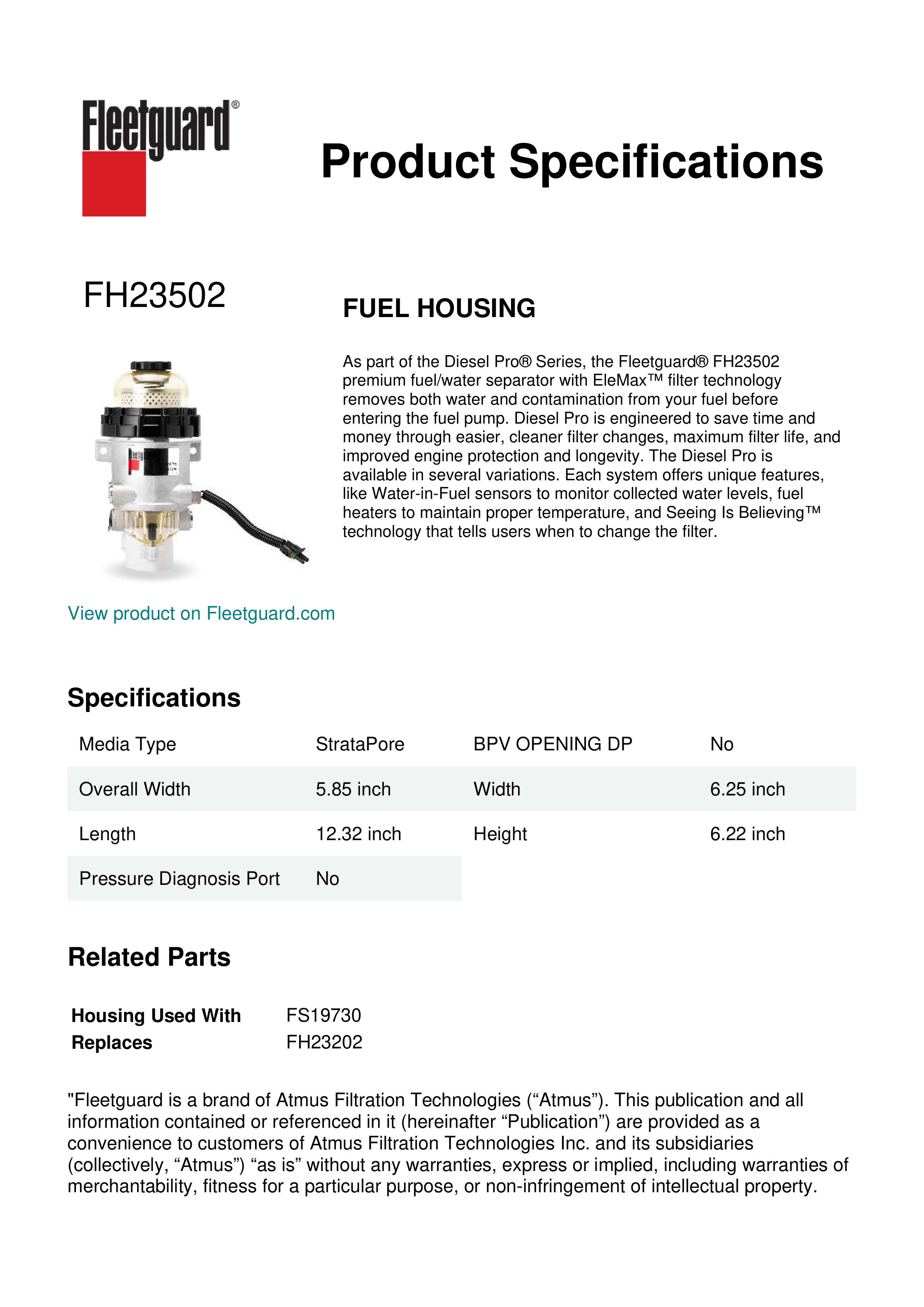Genuine Fleetguard FH23502