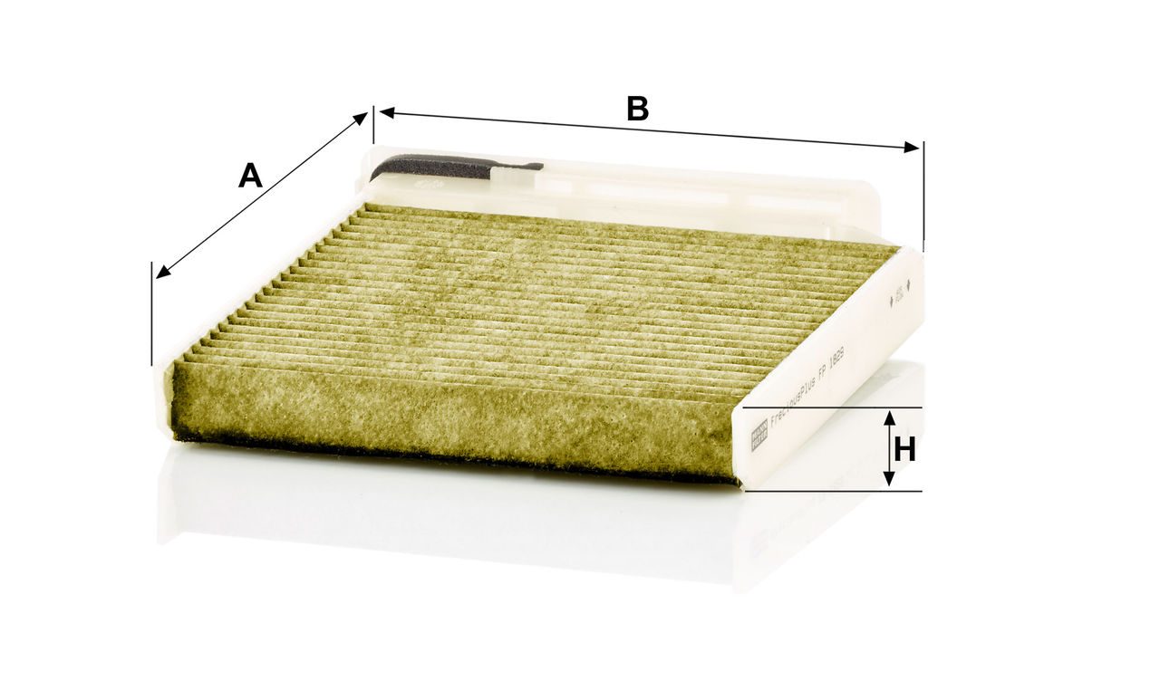 Biofunctional MANN-FILTER FreciousPlus cabin air filters - nearly 100% protection against nitrogen oxides, dust, allergens and mould - harmful gases and unpleasant odours are also eliminated and virus aerosols filtered. The three-layer filter technology absorbs almost 100% of allergens, reduces the growth of molds and bacteria by more than 98% and stops fine dust almost completely.Specification