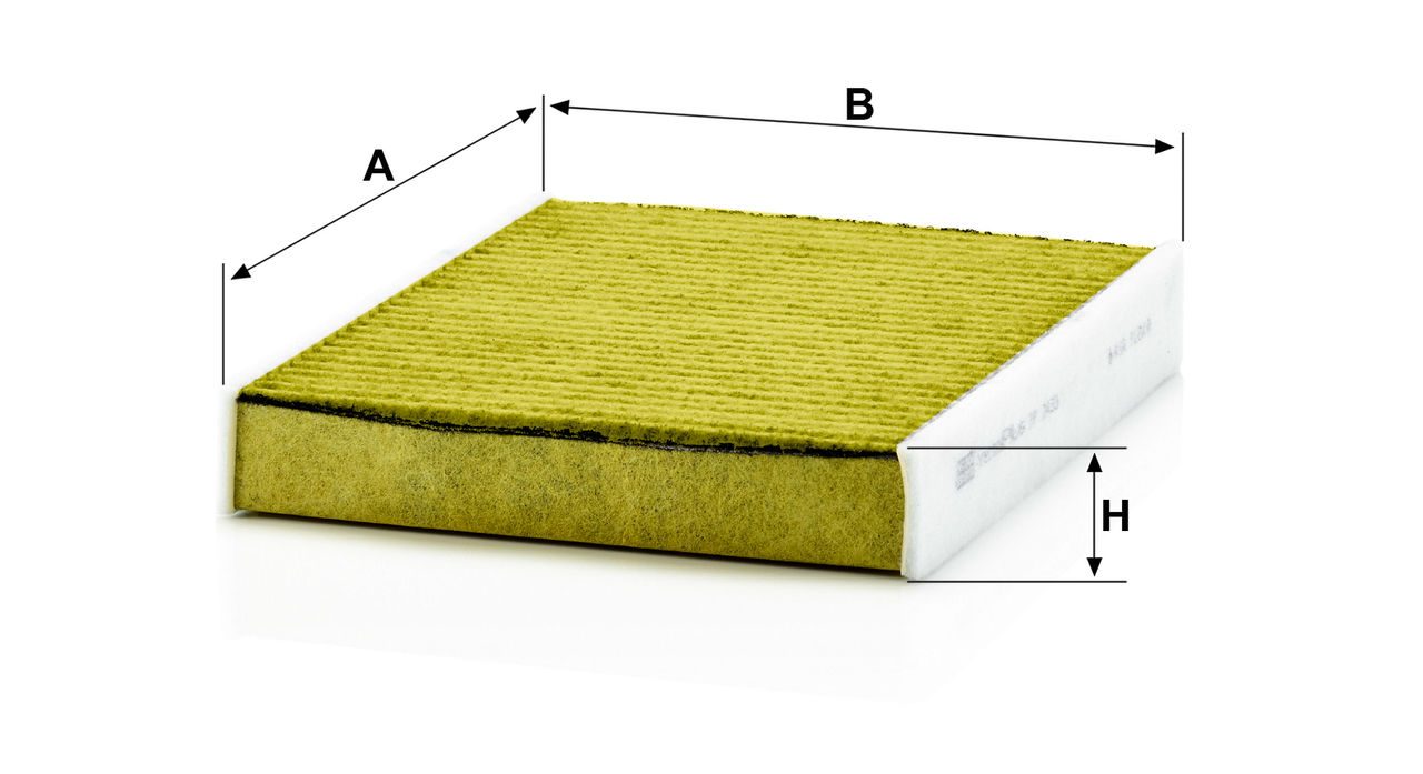 Biofunctional MANN-FILTER FreciousPlus cabin air filters - nearly 100% protection against nitrogen oxides, dust, allergens and mould - harmful gases and unpleasant odours are also eliminated and virus aerosols filtered. The three-layer filter technology absorbs almost 100% of allergens, reduces the growth of molds and bacteria by more than 98% and stops fine dust almost completely.Specification