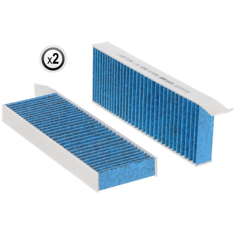 Biofunctional MANN-FILTER FreciousPlus cabin air filters - nearly 100% protection against nitrogen oxides, dust, allergens and mould - harmful gases and unpleasant odours are also eliminated and virus aerosols filtered. The three-layer filter technology absorbs almost 100% of allergens, reduces the growth of molds and bacteria by more than 98% and stops fine dust almost completely.Specification