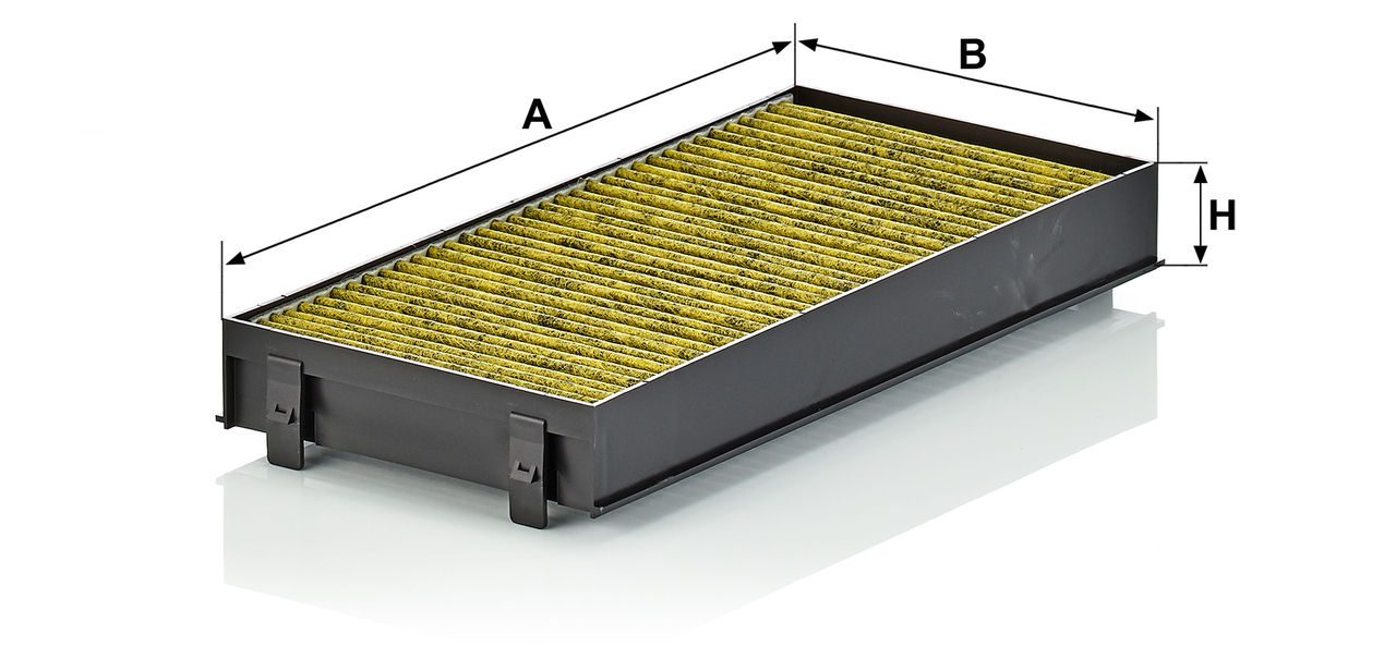 Biofunctional MANN-FILTER FreciousPlus cabin air filters - nearly 100% protection against nitrogen oxides, dust, allergens and mould - harmful gases and unpleasant odours are also eliminated and virus aerosols filtered. The three-layer filter technology absorbs almost 100% of allergens, reduces the growth of molds and bacteria by more than 98% and stops fine dust almost completely.Specification