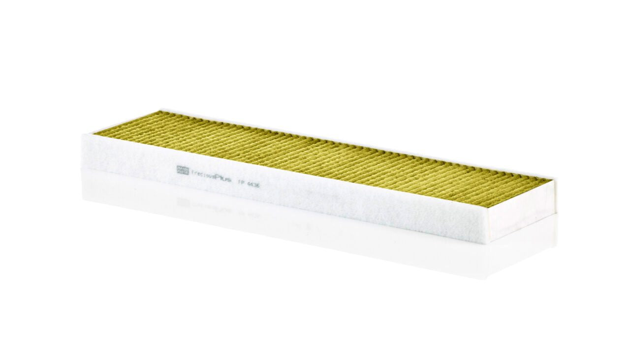 Biofunctional MANN-FILTER FreciousPlus cabin air filters - nearly 100% protection against nitrogen oxides, dust, allergens and mould - harmful gases and unpleasant odours are also eliminated and virus aerosols filtered. The three-layer filter technology absorbs almost 100% of allergens, reduces the growth of molds and bacteria by more than 98% and stops fine dust almost completely.