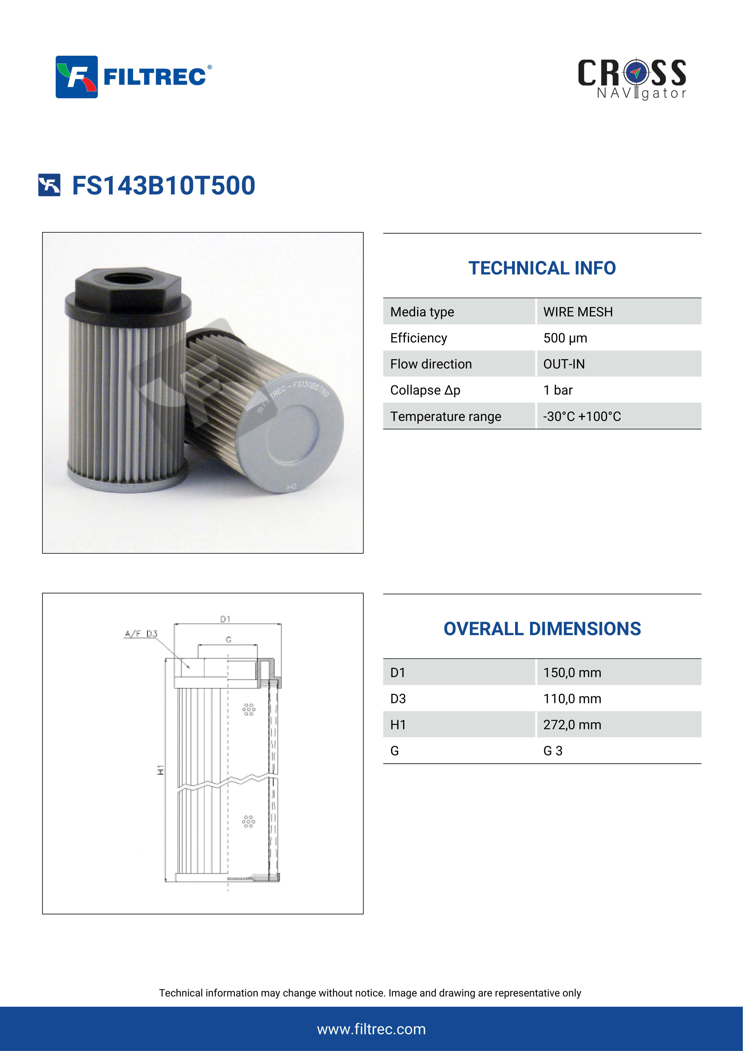 Genuine Filtrec FS143B10T500. This Filtrec element is designed to meet or exceed the quality and performance of brand OEM’s ensuring superior filtration performance and long-lasting durability.Engineered with their high performance media and a durable design, the FS143B10T500 provides reliable and consistent performance over its lifespan, even in harsh operating environments. When you order from FilterFinder, you can trust that you are getting a reliable and high-quality replacement filter that will keep your system running smoothly.