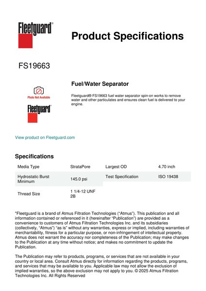 Genuine Fleetguard FS19663