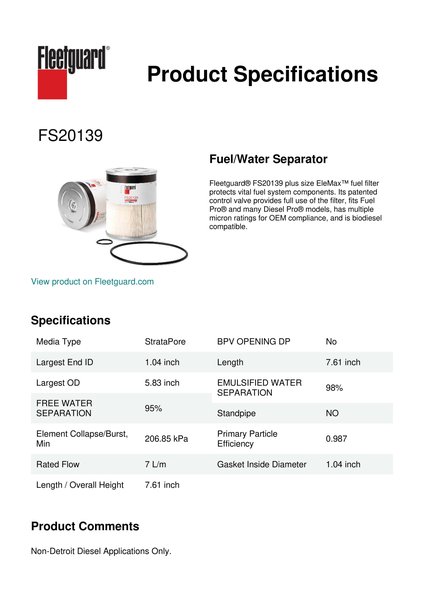 The efficiency of the element is shown using the Micron (µ) and Beta (β) ratings. The micron rating indicates the size of the particle being filtered and the beta rating the efficiency, calculated as 1/β.