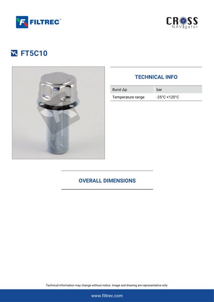 Genuine Filtrec FT5C10. This Filtrec element is designed to meet or exceed the quality and performance of brand OEM’s ensuring superior filtration performance and long-lasting durability.
