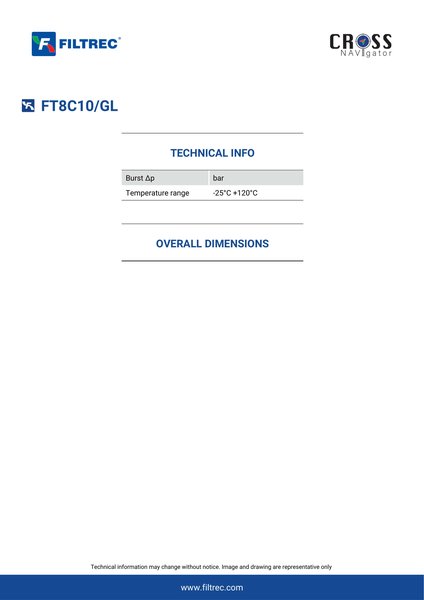 Genuine Filtrec FT8C10/GL. This Filtrec element is designed to meet or exceed the quality and performance of brand OEM’s ensuring superior filtration performance and long-lasting durability.