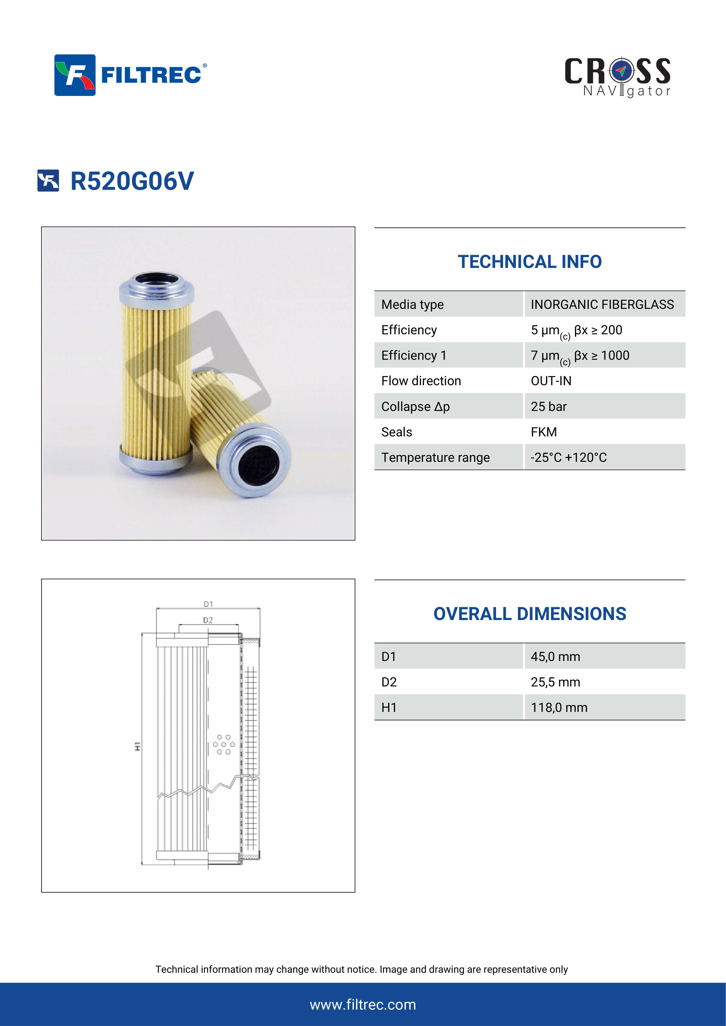 Genuine Filtrec R520G06V. This Filtrec element is designed to meet or exceed the quality and performance of brand OEM’s ensuring superior filtration performance and long-lasting durability.