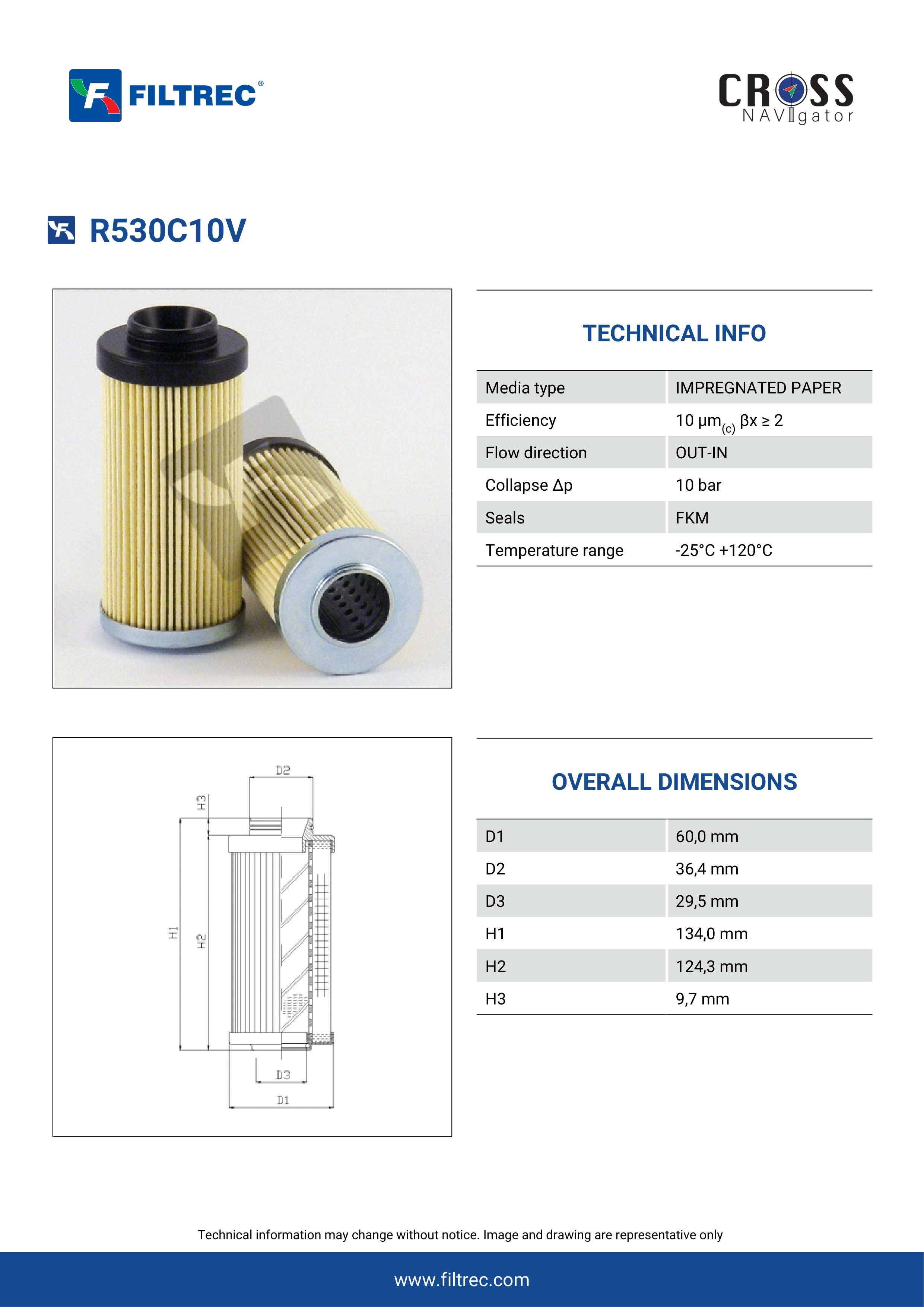 The efficiency of the element is shown using the Micron (µ) and Beta (β) ratings. The micron rating indicates the size of the particle being filtered and the beta rating the efficiency, calculated as 1/β.