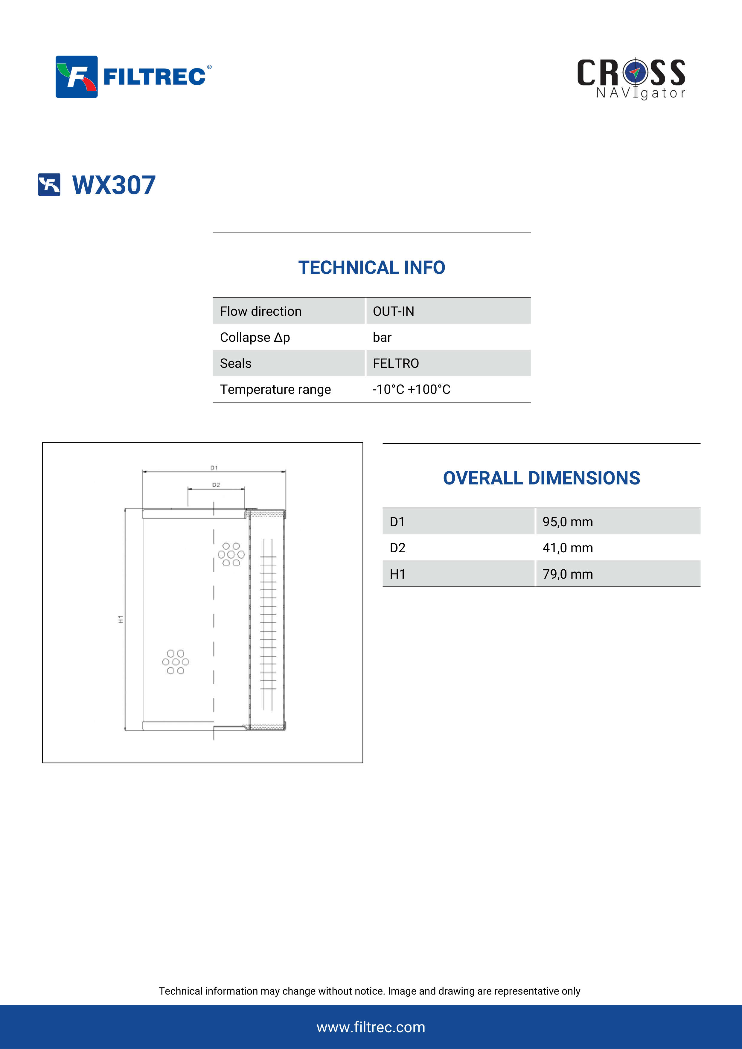 Genuine Filtrec WX307. This Filtrec element is designed to meet or exceed the quality and performance of brand OEM’s ensuring superior filtration performance and long-lasting durability.