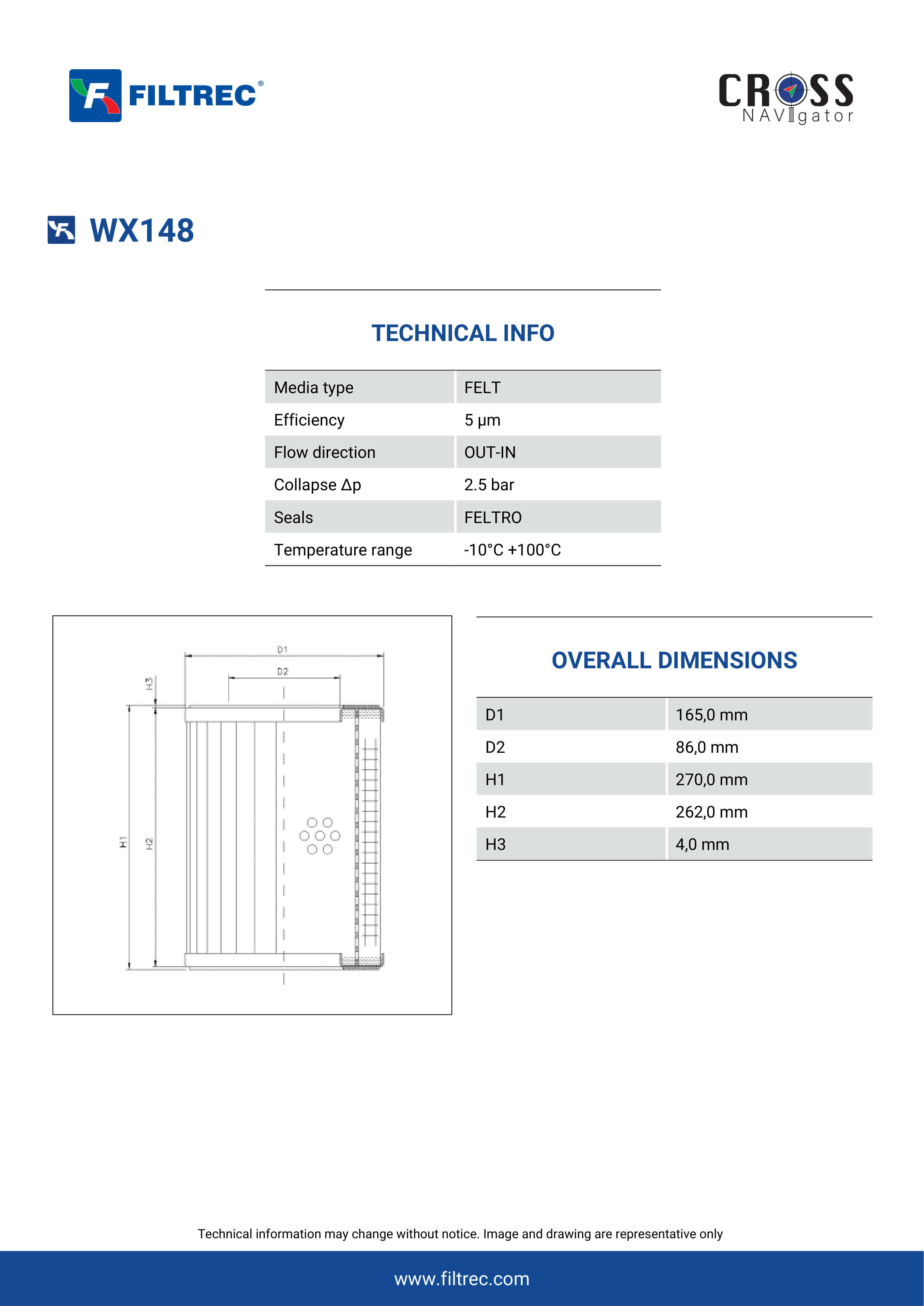 Genuine Filtrec WX148. This Filtrec element is designed to meet or exceed the quality and performance of brand OEM’s ensuring superior filtration performance and long-lasting durability.