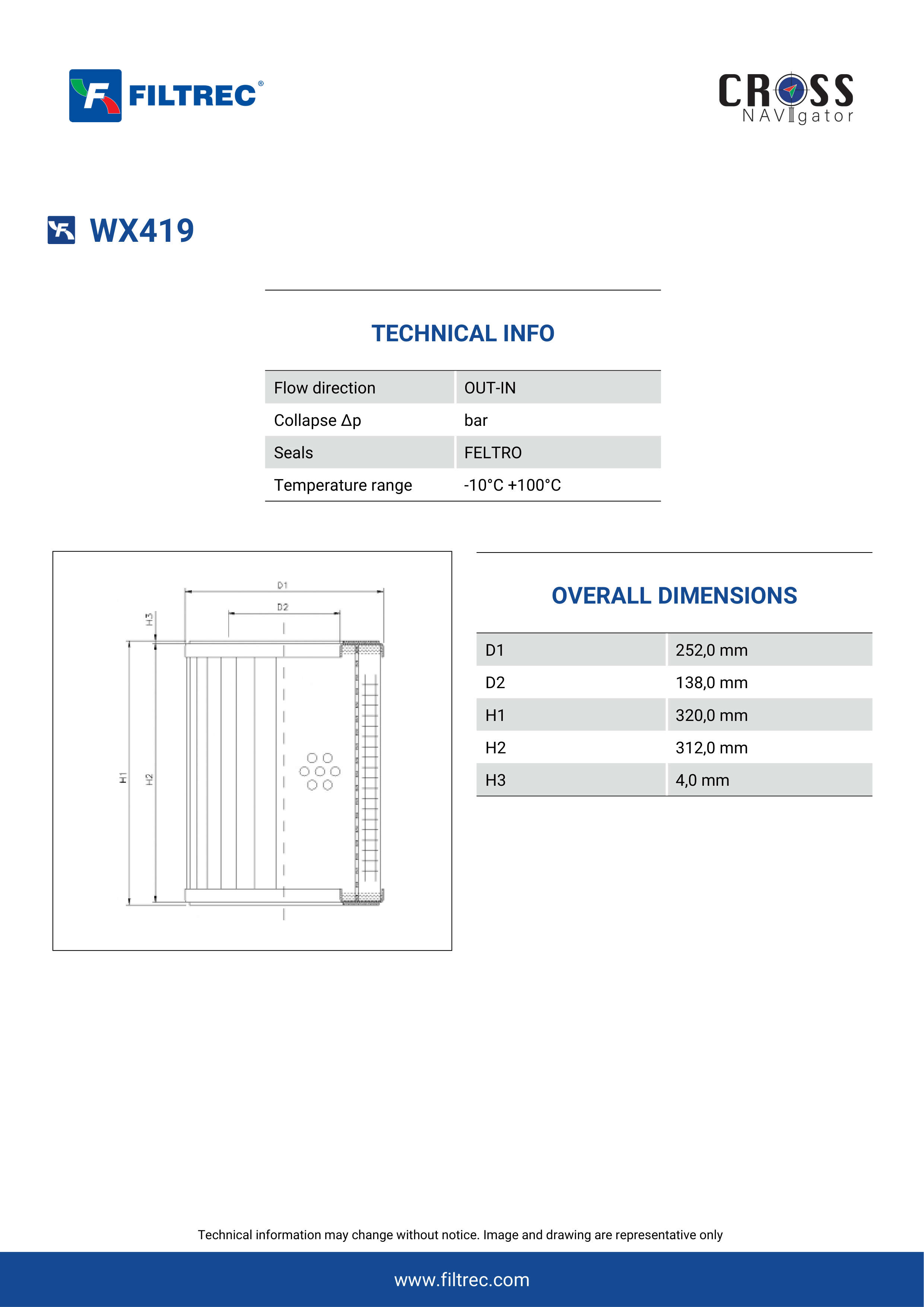 Genuine Filtrec WX419. This Filtrec element is designed to meet or exceed the quality and performance of brand OEM’s ensuring superior filtration performance and long-lasting durability.
