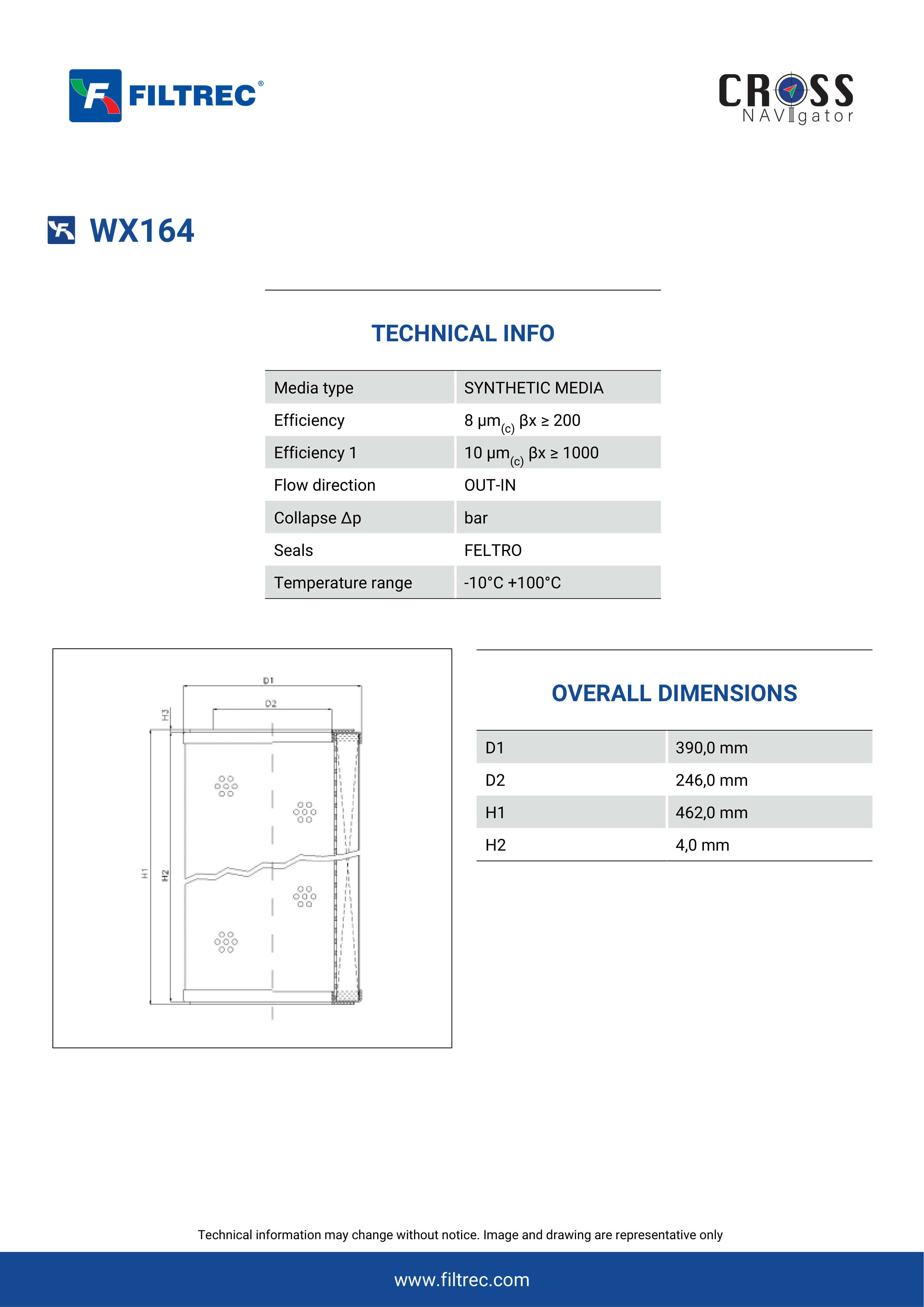 Genuine Filtrec WX164. This Filtrec element is designed to meet or exceed the quality and performance of brand OEM’s ensuring superior filtration performance and long-lasting durability.