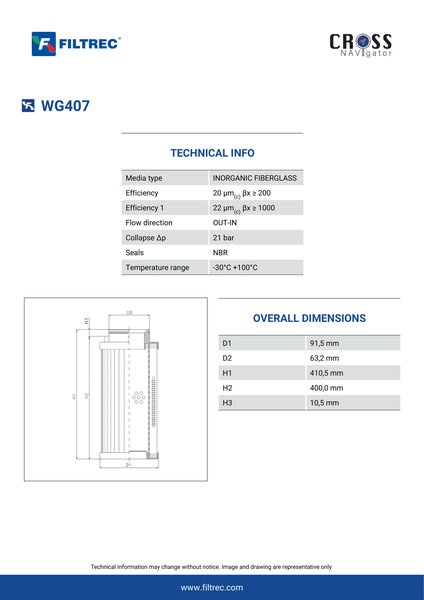 Genuine Filtrec WG407. This Filtrec element is designed to meet or exceed the quality and performance of brand OEM’s ensuring superior filtration performance and long-lasting durability.
