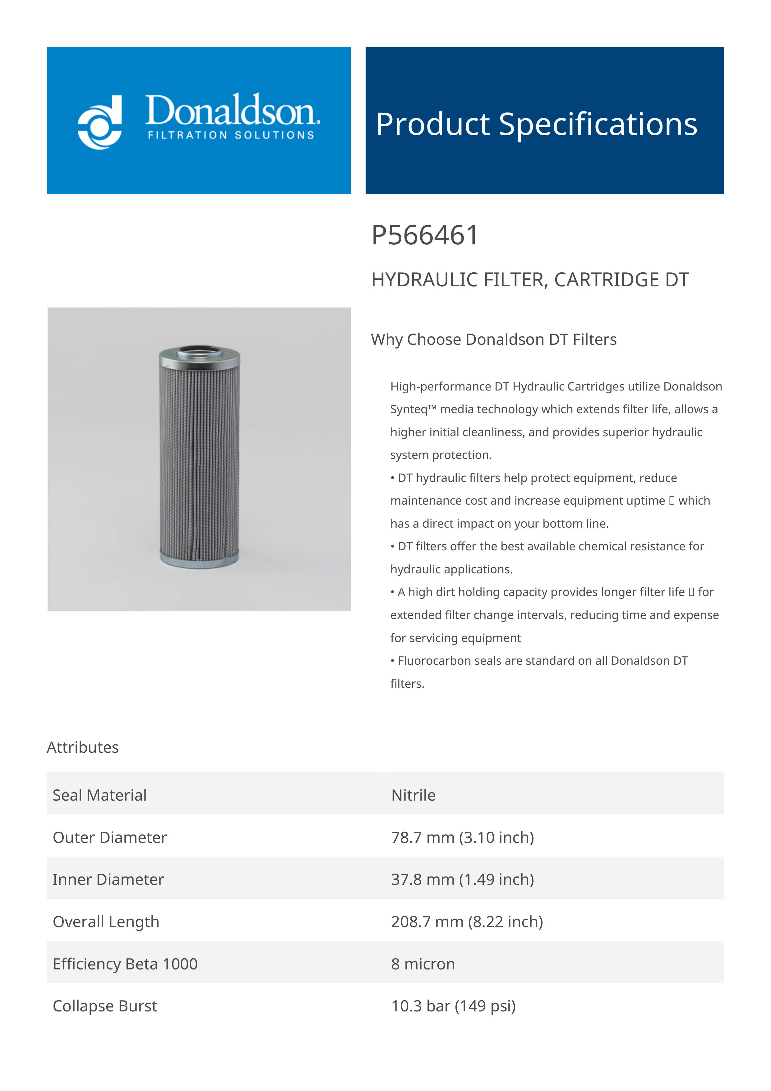 The efficiency of the element is shown using the Micron (µ) and Beta (β) ratings. The micron rating indicates the size of the particle being filtered and the beta rating the efficiency, calculated as 1/β.