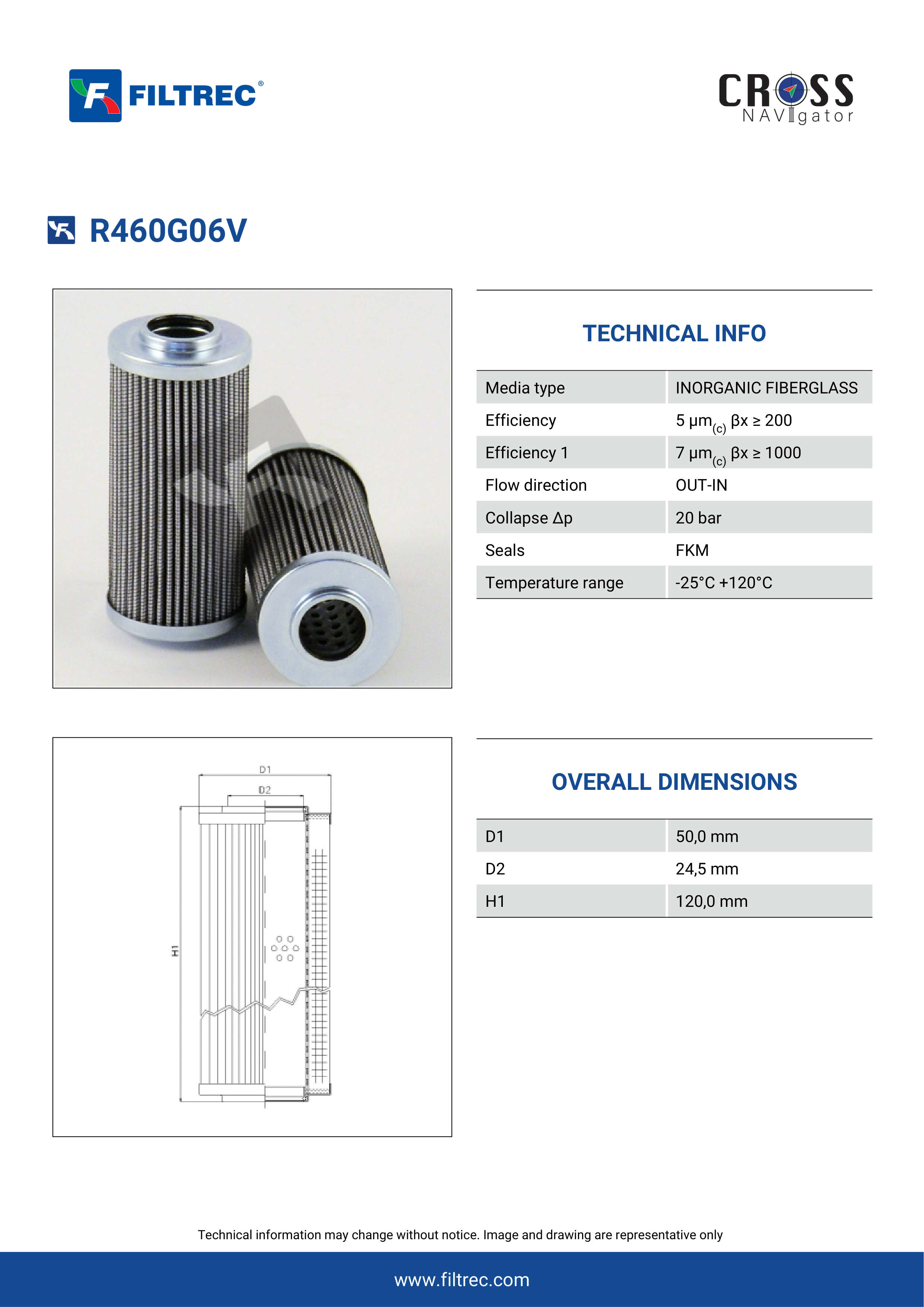 The efficiency of the element is shown using the Micron (µ) and Beta (β) ratings. The micron rating indicates the size of the particle being filtered and the beta rating the efficiency, calculated as 1/β.