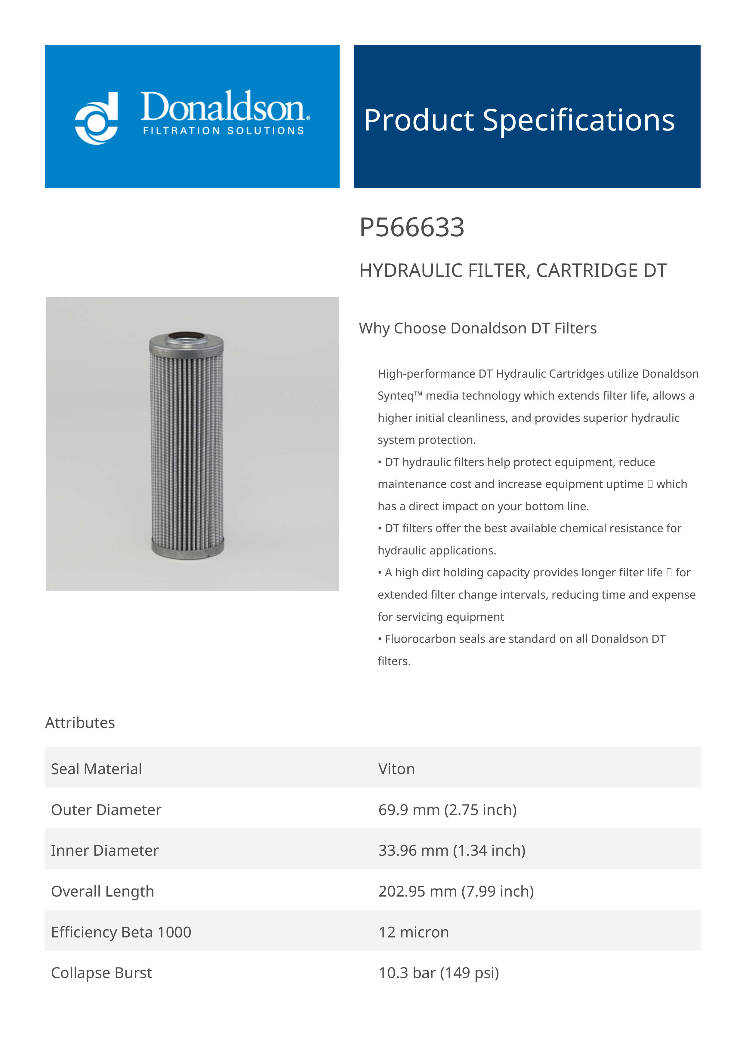 Donaldson P566633 Hydraulic Filter, Cartridge Dt | Replaces the Pall HC9100FKS8Z