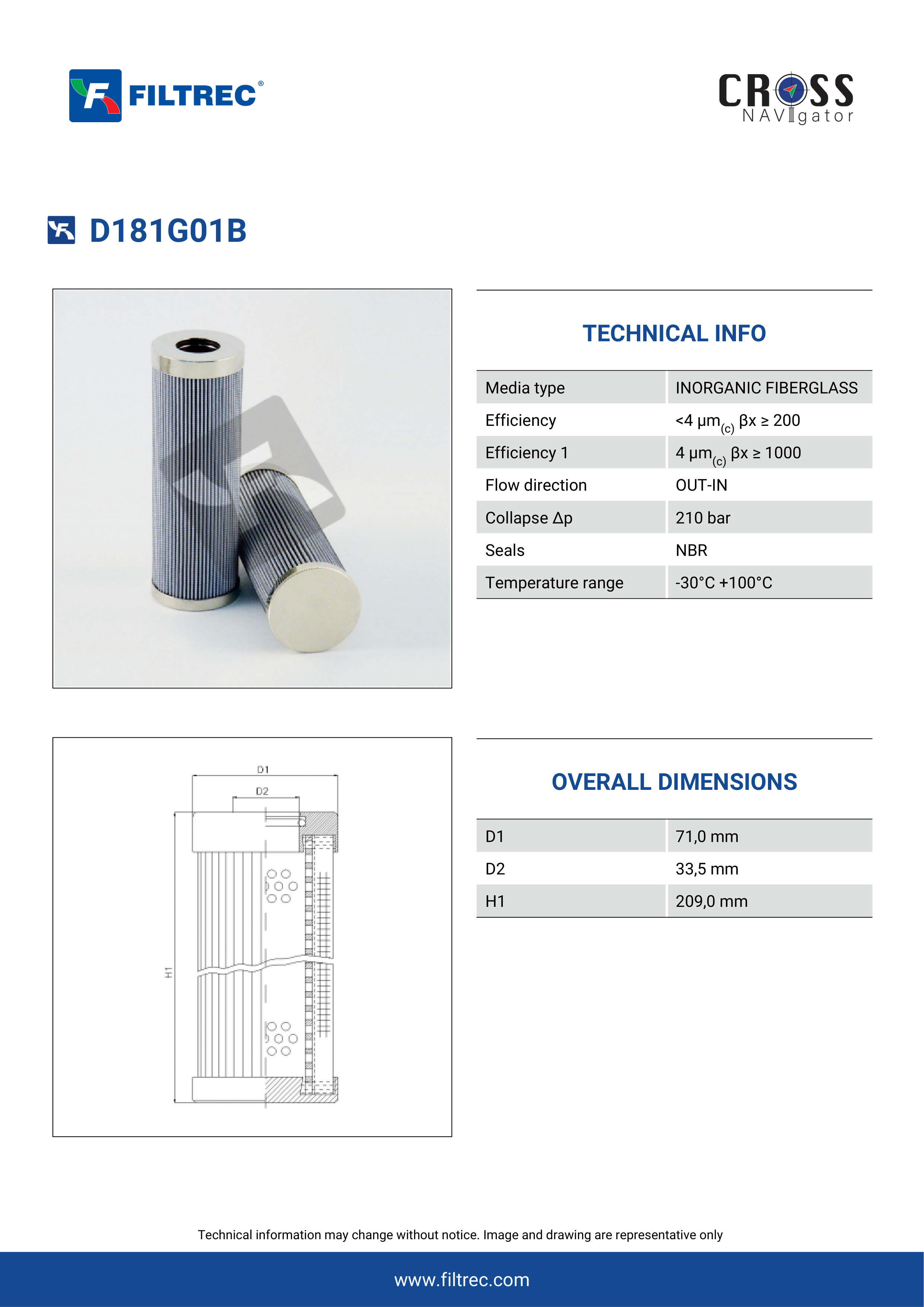 Genuine Filtrec D181G01B. This Filtrec element is designed to meet or exceed the quality and performance of brand OEM’s ensuring superior filtration performance and long-lasting durability.